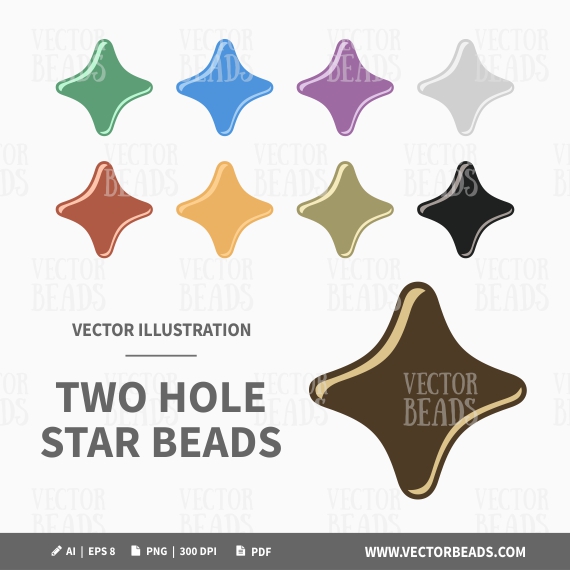 4. Vector Clip Art Set of Two-hole Star Beads – Instant Download