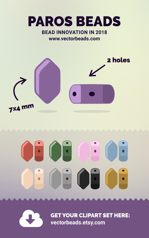 Glass beads Paros by Puca is the new two-hole bead shape. From now they are available as vector illustration for creating beading instructions. Download HERE!